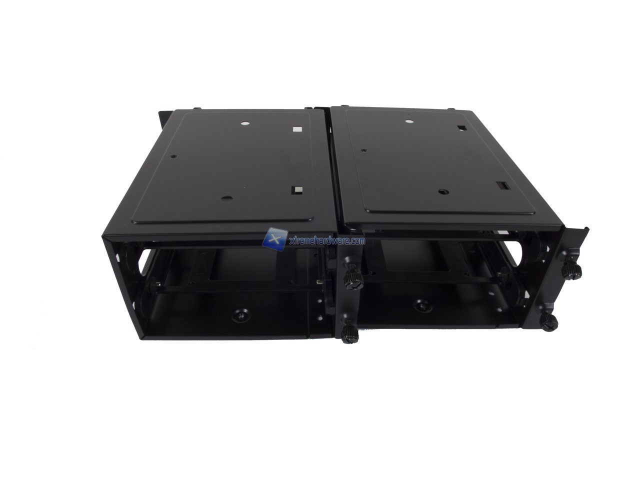 A seguire verso l’alto troviamo ben due Cage che ci permetteranno di installare per ciascuno due SSD o Hard Disk classici viste le slitte compatibili con entrambe le disposizioni dei fori.